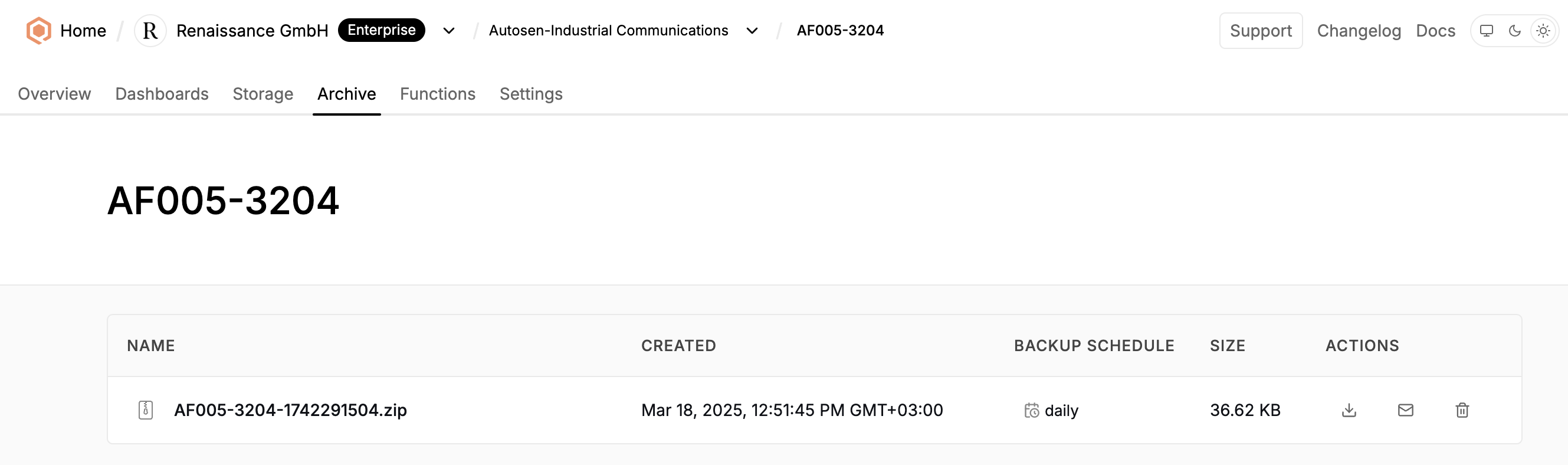 Archived Views automatically archive device data at scheduled intervals per device, preserving historical records based on the selected schedule. This provides backups that can be downloaded or emailed as needed.